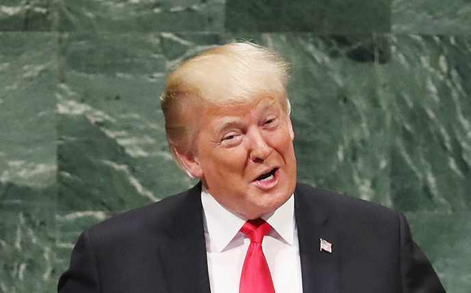 NEW YORK, NY - AUGUST 15: US President Donald Trump speaks following a meeting on infrastructure at Trump Tower, August 15, 2017 in New York City. He fielded questions from reporters about his comments on the events in Charlottesville, Virginia and white supremacists. (Photo by Drew Angerer/Getty Images)